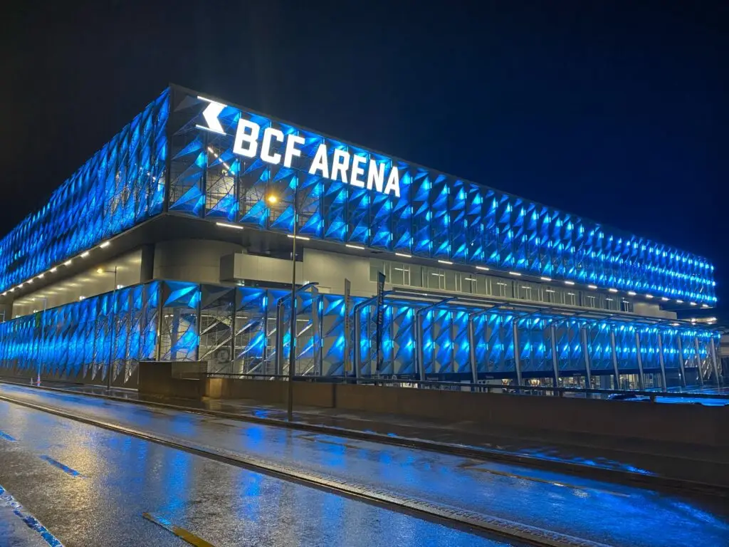 En 2022, Michel Clerc participe à la mise en lumière de l’enveloppe extérieure de la BCF Arena, enceinte emblématique du sport fribourgeois.